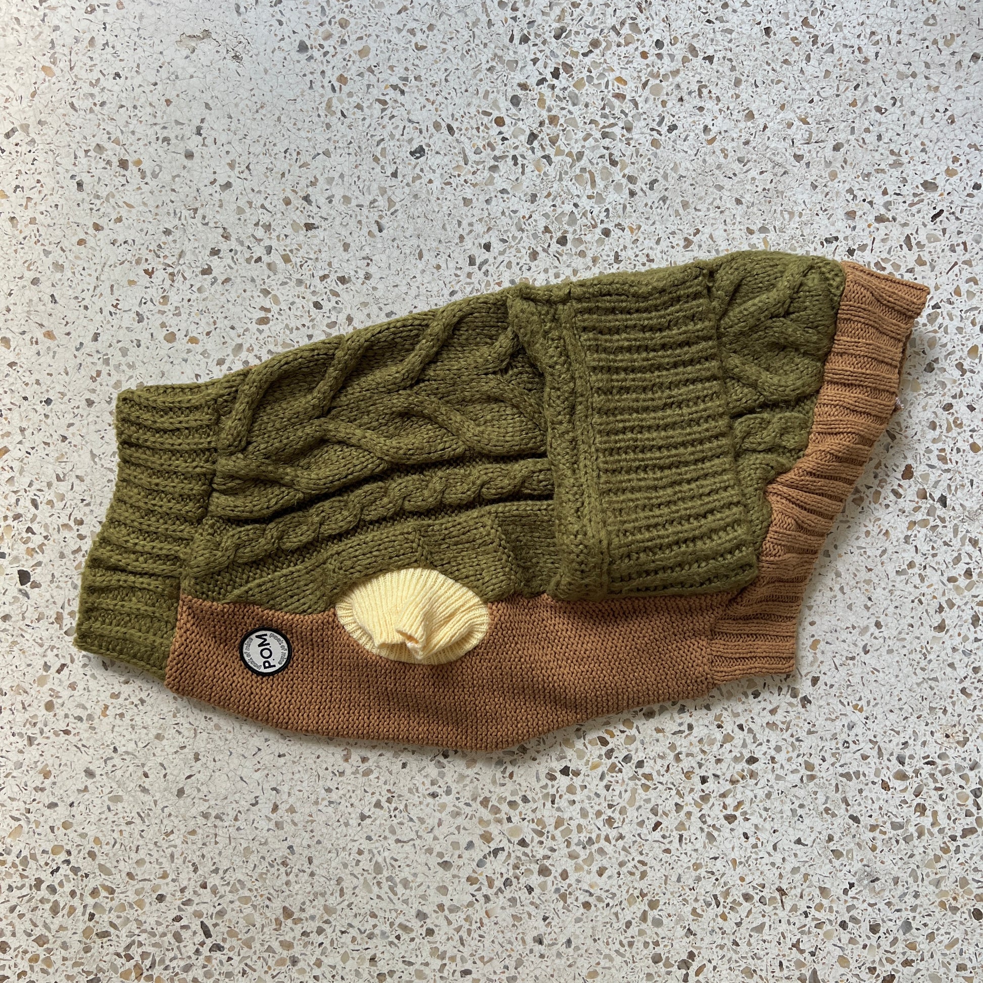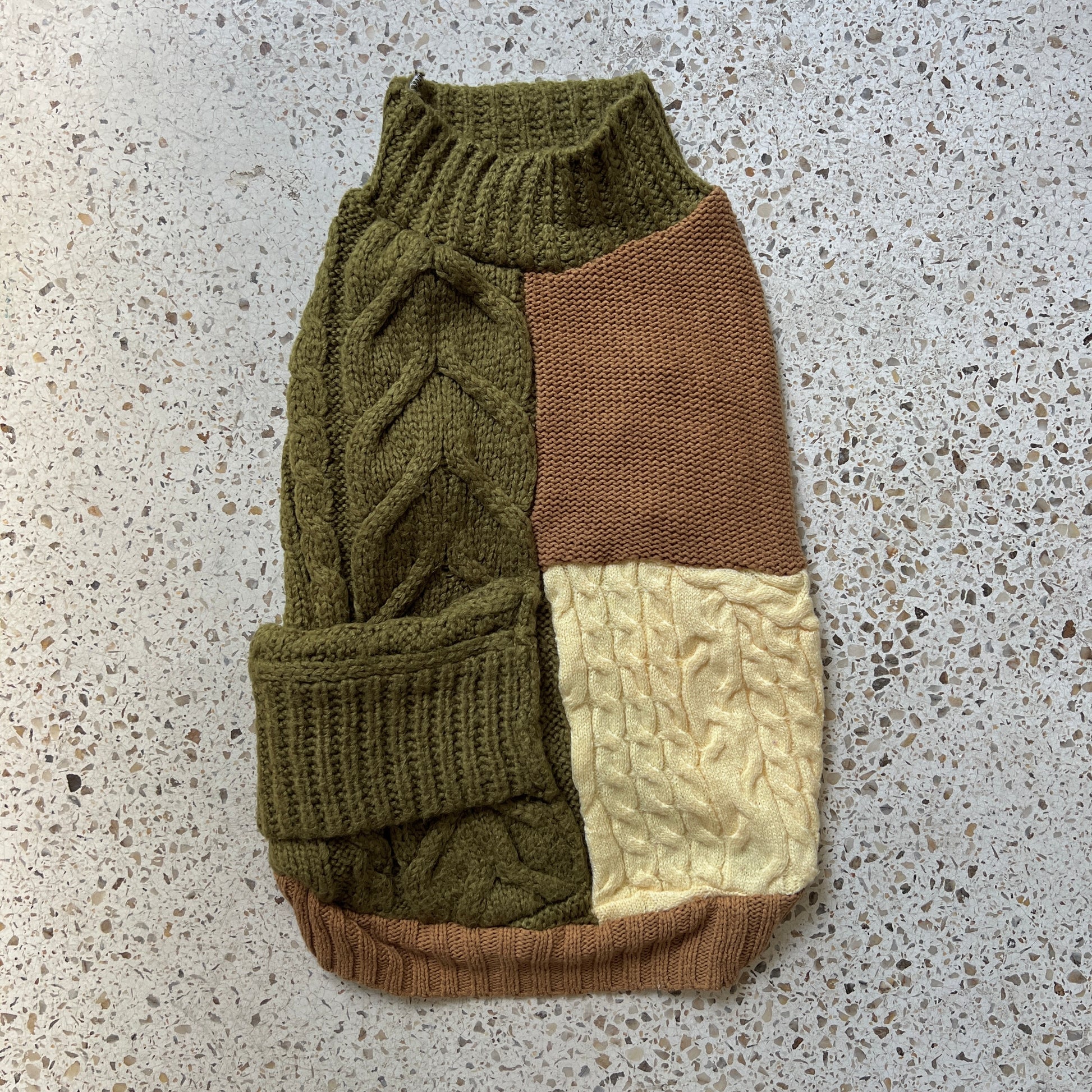 Our lonewolf knit jumpers are created using preloved knitwear that have been reworked and upcycled to create a one of a kind piece for your pet - no two are the same!