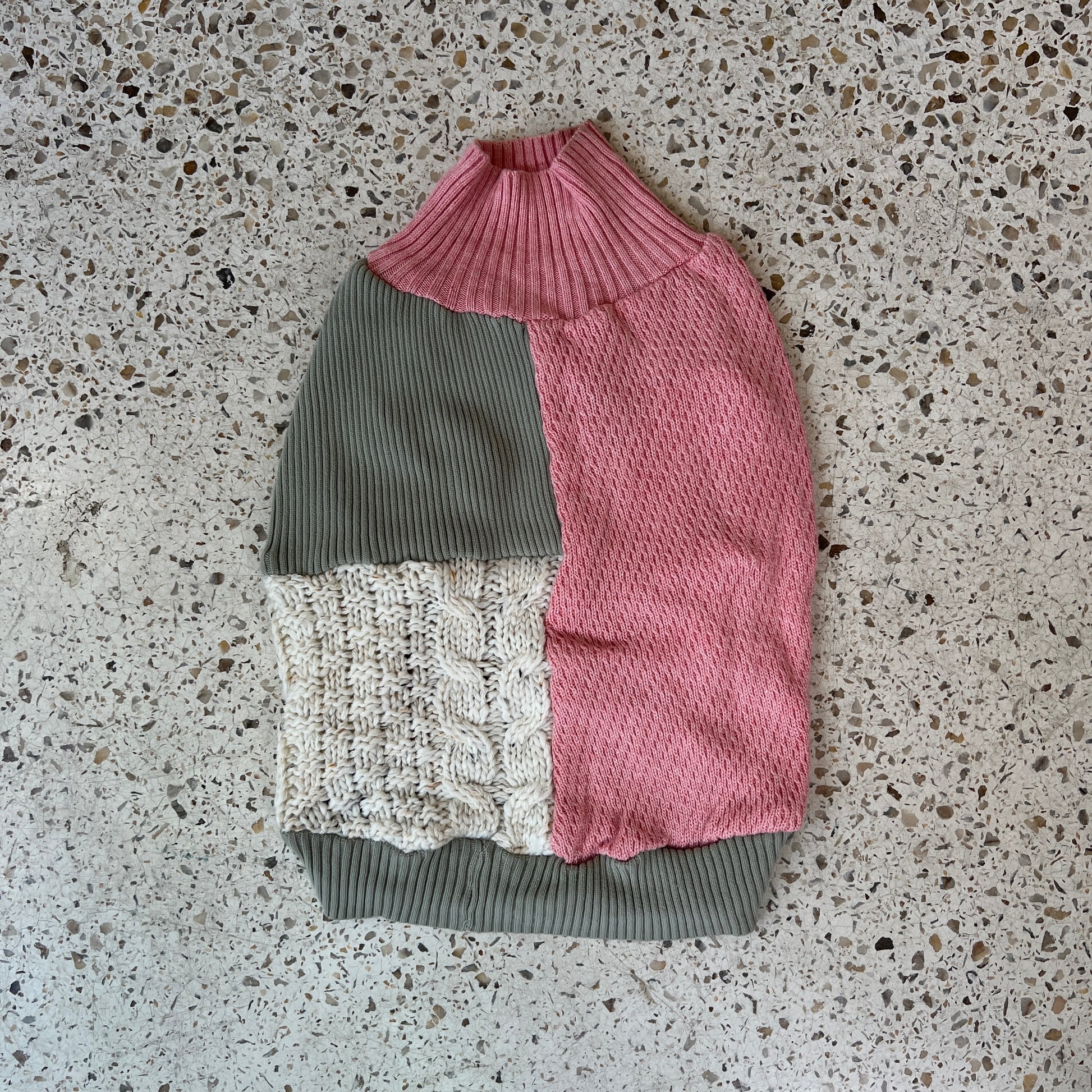 Our lonewolf knits are created from upcycled knitwear pieces that have been reworked to create a one of a kind piece for your pet - no two are the same!