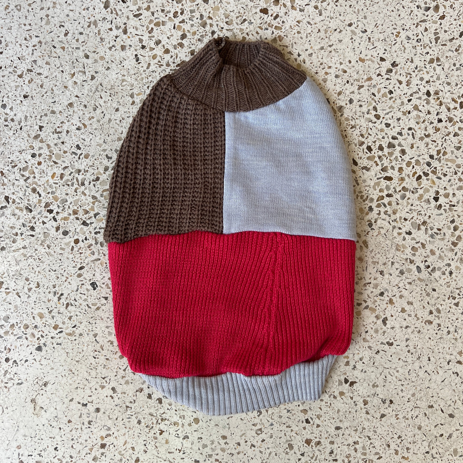 Our lonewolf knits are created from upcycled knitwear pieces that have been reworked to create a one of a kind piece for your pet - no two are the same!